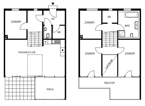 Abb.links: Objekt 1 nach Sanierung, Abb. rechts: Objekt 2 und Objekt 3 (Passivhaus)